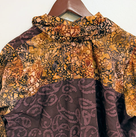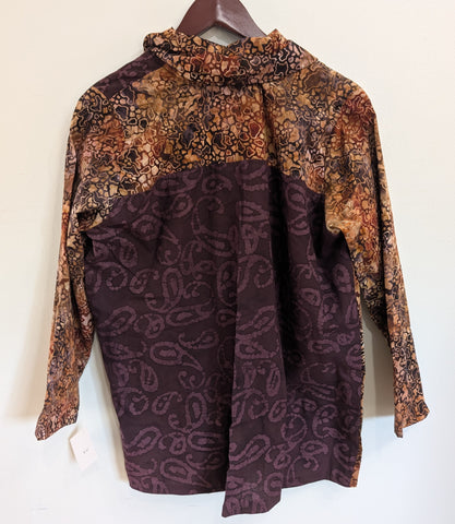 amazing colour range in these printed cottons to make up this unique piece .it is a one of a kind size large.